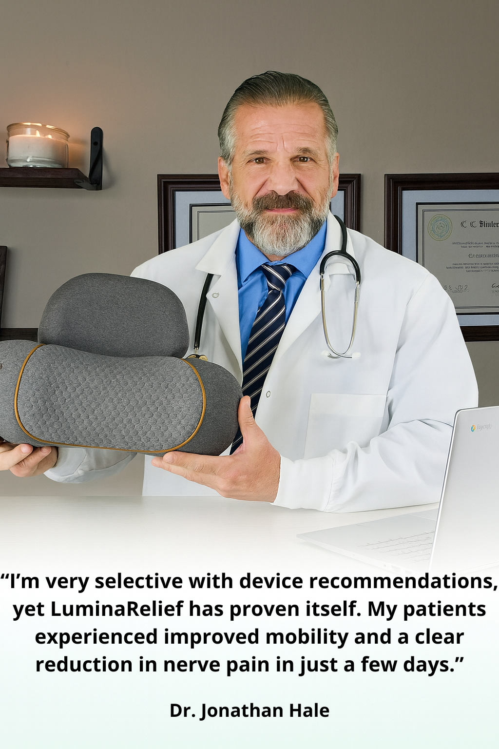 LuminaRelief was carefully evaluated by our internal specialists and sent to multiple independent doctors and therapists for real-world testing — both personally and with patients experiencing significant neck and posture-related issues.